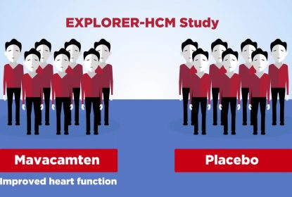 This video explains key findings from the SEQUOIA-HCM trial, which were published in the New England Journal of Medicine. SEQUOIA-HCM focuses on obstructive hypertrophic cardiomyopathy (or oHCM), a condition where the heart contracts too strongly and the heart muscle is too thick and stiff on the left side, leading to obstructed blood flow out of the heart. Aficamten is a cardiac myosin inhibitor that decreases how strongly the heart contracts, and is being tested in clinical trials as a treatment for oHCM. SEQUOIA-HCM involved 142 people with oHCM who took aficamten and 140 who took a placebo, plus their usual medicine(s). Researchers compared aficamten to placebo in terms of how well it works and how safe it is. After 6 months’ treatment, people who took aficamten had a greater improvement in exercise capacity compared to those who took a placebo. They also had improved quality of life, reduced symptoms, and an improvement in how well their heart worked. People had a similar number of side effects whether they took aficamten or a placebo. These results from SEQUOIA-HCM could mean that aficamten may become a new treatment to improve exercise capacity, symptoms, and quality of life among people with oHCM.